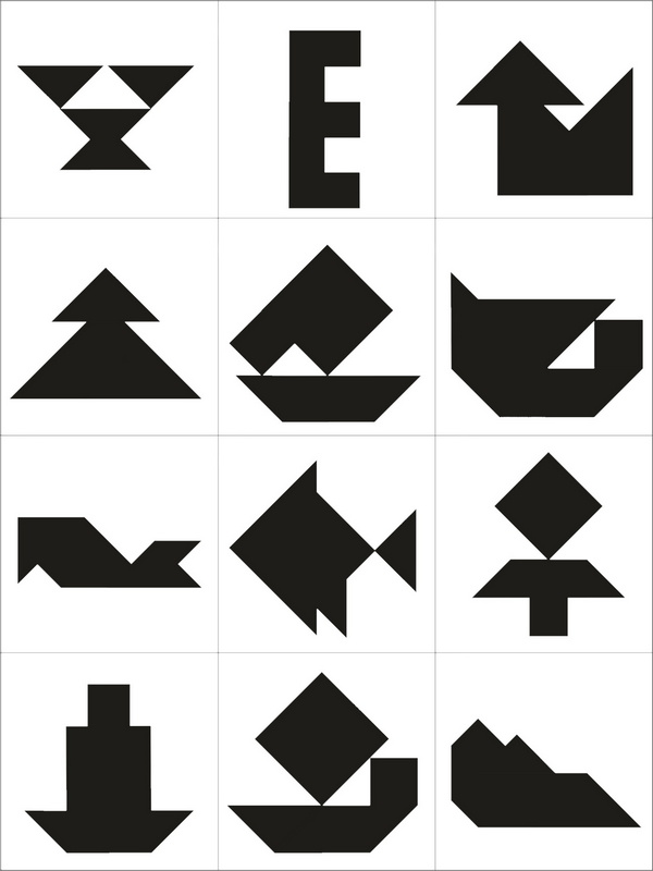 úkol: Tangramy - složte z jednotlivých dílků obrazce dle předlohy.